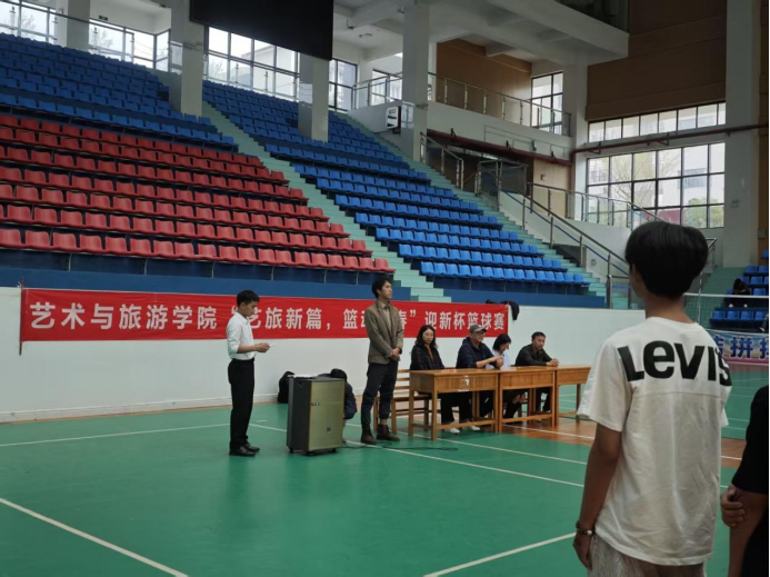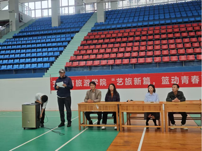 2025年10月16日,艺术与旅游学院“艺旅新篇·篮动青春”2025级迎新杯篮球赛开幕。学院党委书记甘凌、团委指导老师姚杨、学生会指导老师石爱华以及学院各班辅导员出席了此次开幕式。