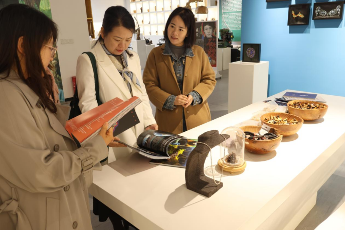 随后,姜敏书记与王可欣老师依次走访了交通景观雕塑生产性实训基地、千岛文化馆及艺术与旅游学院数字化实训中心,详细了解我院在艺术创作实践、地方文化传承与数字化教学资源建设等方面的特色做法与成果。