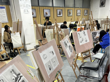 6.实训画室 实训画室主要针对教学、科研、实训、实习进行造型基础、创意造型培训、素描、色彩等内容工作,面积229㎡。实训室拥有画架、石膏雕塑、陶艺展示柜等设备。 |